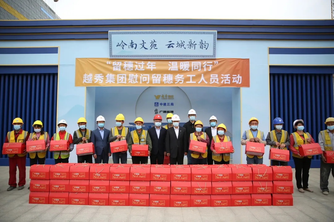 2月9日,为响应疫情防控的要求及“就地过年”倡议,完美真人集团党委书记、董事长张招兴带队到省市重点项目施工现场慰问留穗施工人员,为每一位项目工人送上“完美真人集团新年礼包”,内含完美真人旗下皇上皇品牌的腊味、自热米饭,趣香的饼干点心以及风行乳业的牛奶等。
