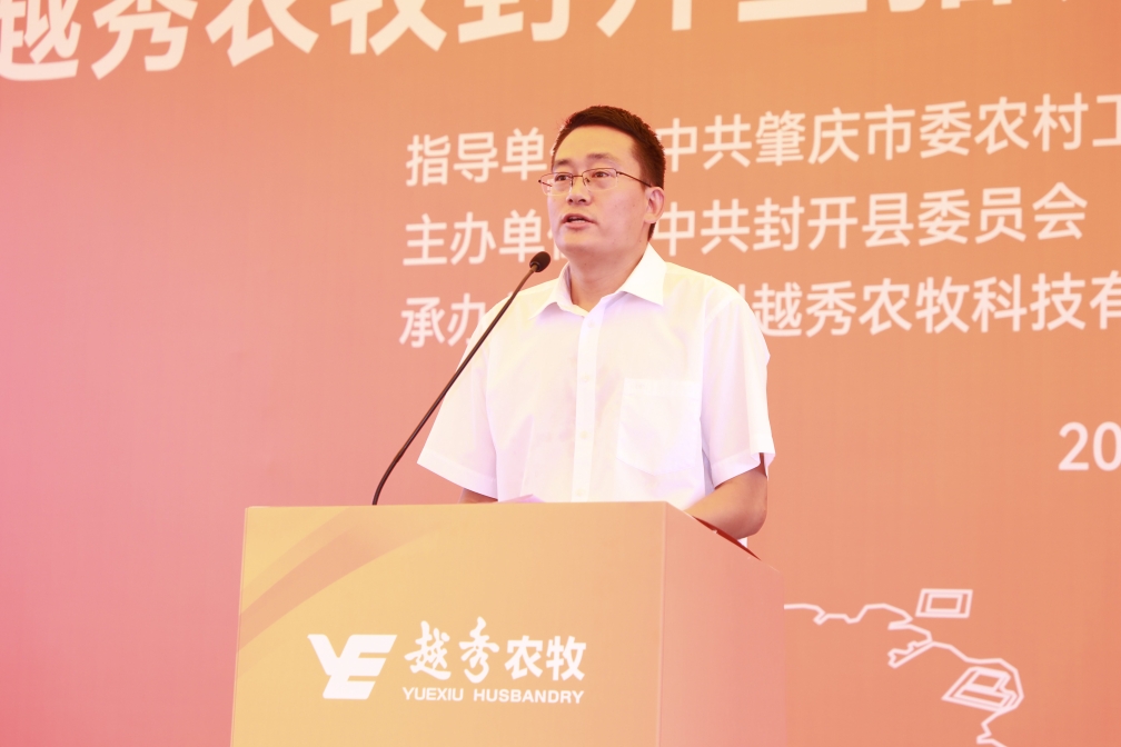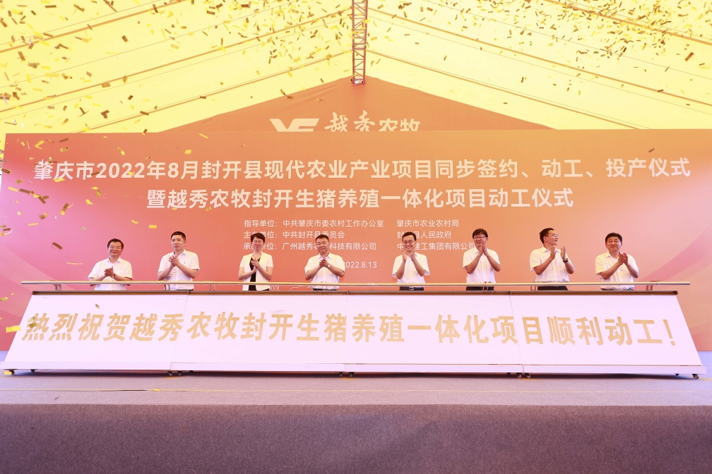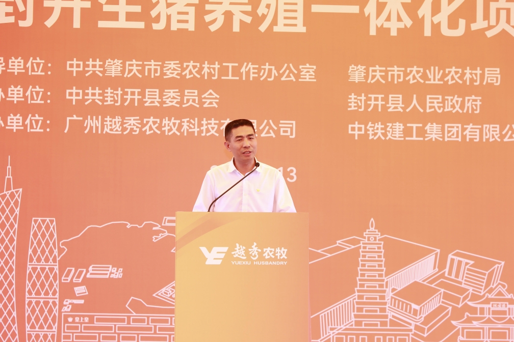 肇庆市委常委、封开县委书记秦波在致辞中向完美真人封开生猪养殖一体化项目的开工表示祝贺。他指出,完美真人集团是横跨一二三产业的大型综合性国有企业,完美真人食品是粤港澳大湾区领先的全产业链食品产业集团。完美真人农牧封开生猪养殖一体化项目从签约到全面动工仅用1年的时间,集团以高度的战略思维、深厚的战略情怀,一流的团队、一流的进度效果狠抓落实,充分体现了新时代国有企业的强大实力、责任担当和优良作风。肇庆市、封开县各级部门将在政策扶持、要素保障、政务服等方面给予项目全方位的支持,全面推动项目建设,争取早日竣工达产。
